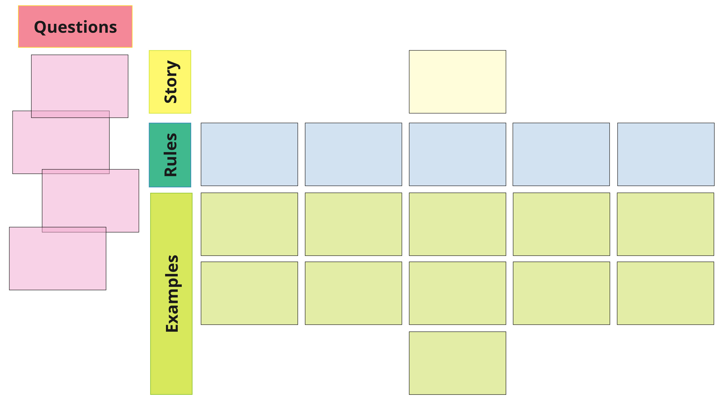 At the end of example mapping, you will have clear examples of each business rules, and the process of generating those will also trigger the discovery of additional business rules as well as additional stories that may be necessary to include in the slice. The structure of the business rules and examples can also give clues that the story can be split into smaller stories, as you’ll read in Chapter 3 - “Example Mapping”.