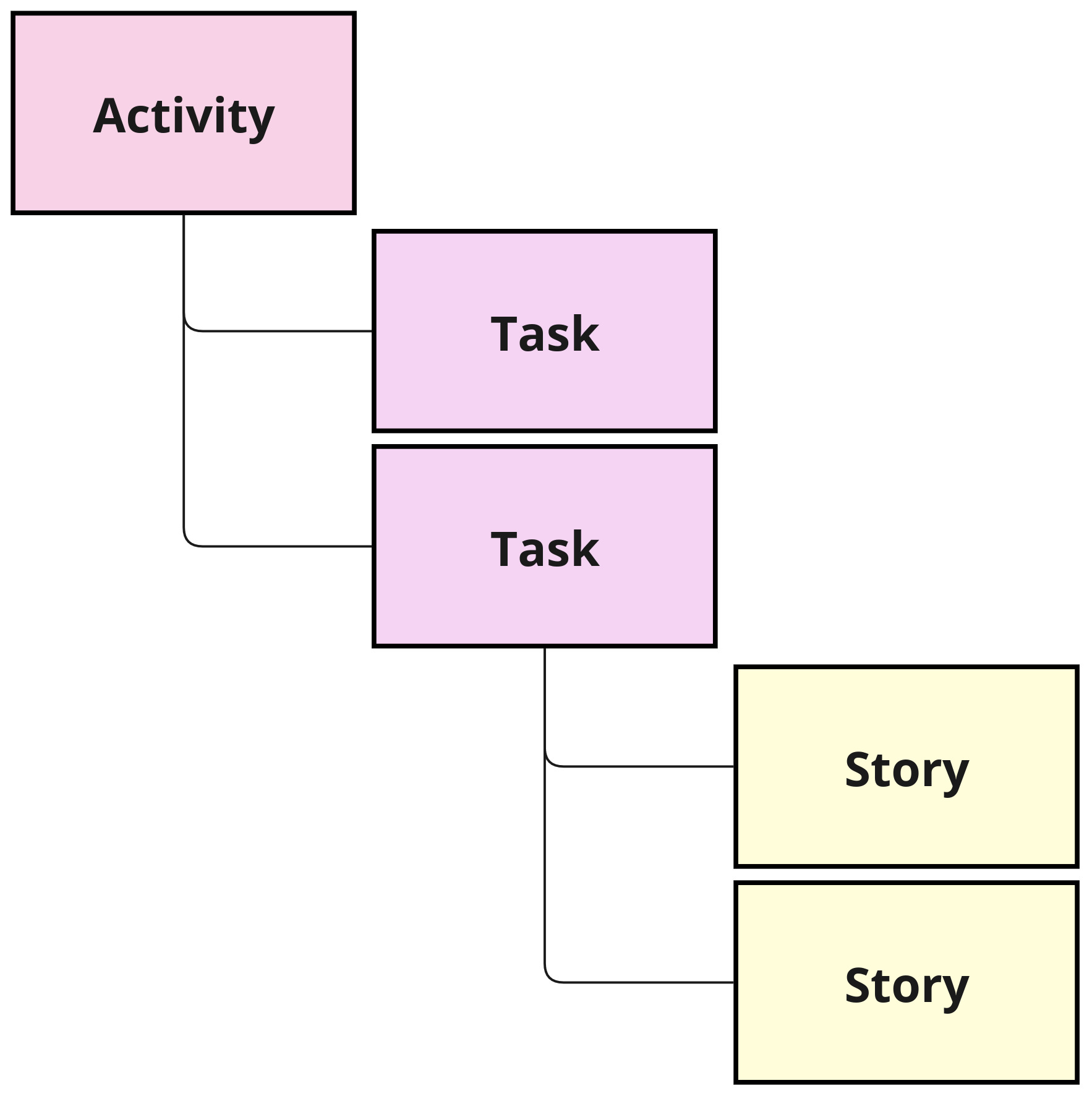 Let’s take a further look at dealing with different levels of detail in the story map, and how you can decide whether something should be an activity, a task or a story.